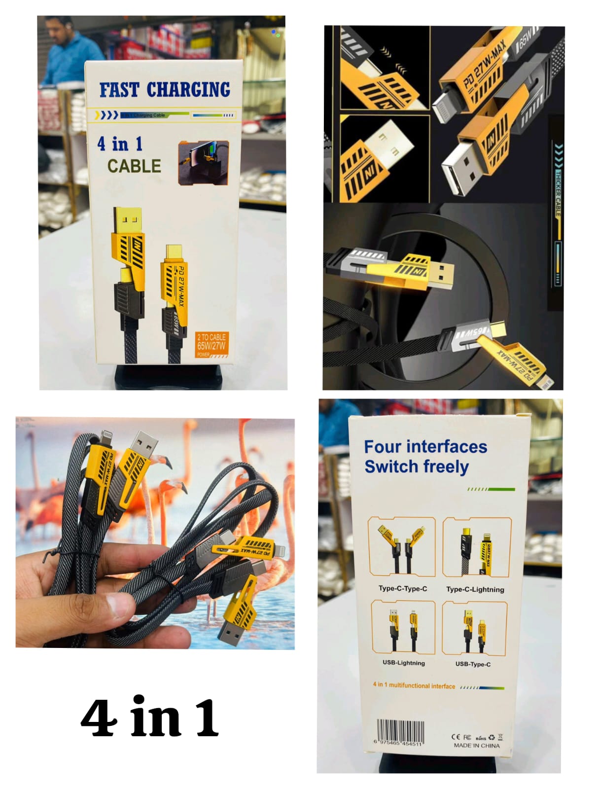 4-in-1 Multi Charging & Data Cable – Gold-Plated Ports, Ultra-Fast Charging, Thunderbolt/Type-C/Lightning/USB-A Compatible with iPhone & Laptops