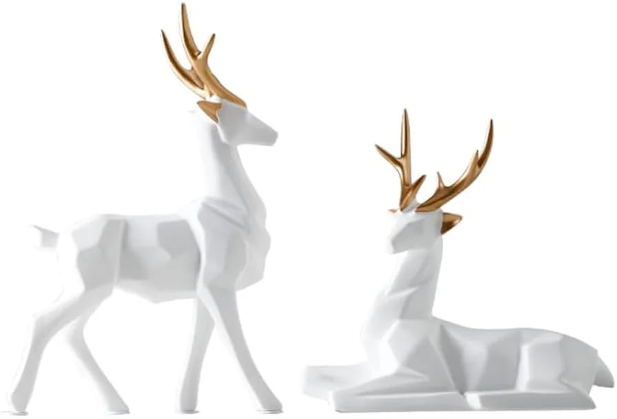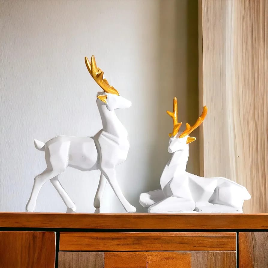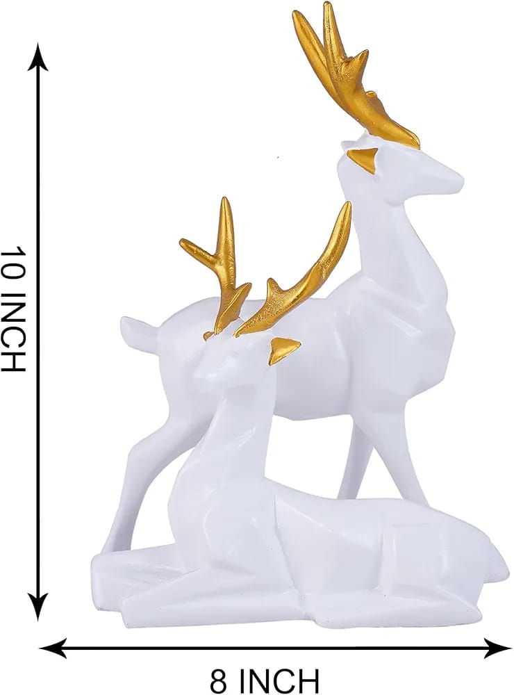 White Deer/Hiran Showpiece Couple Resin Deers Statue for Home Decor & Office Decor (Set of 2) With Thermacol Box Packaging (Size25cm×20cm)